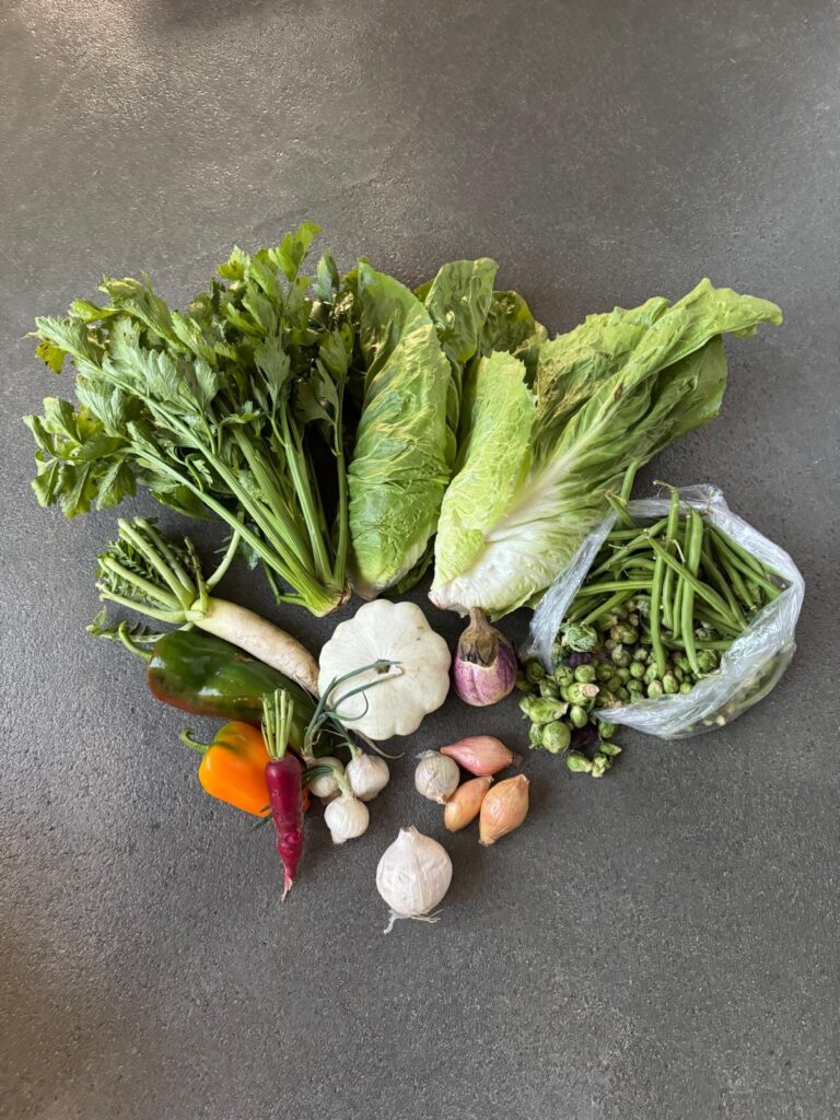 Ein Blick in die Gemüsetasche (zwei Ernteanteile)